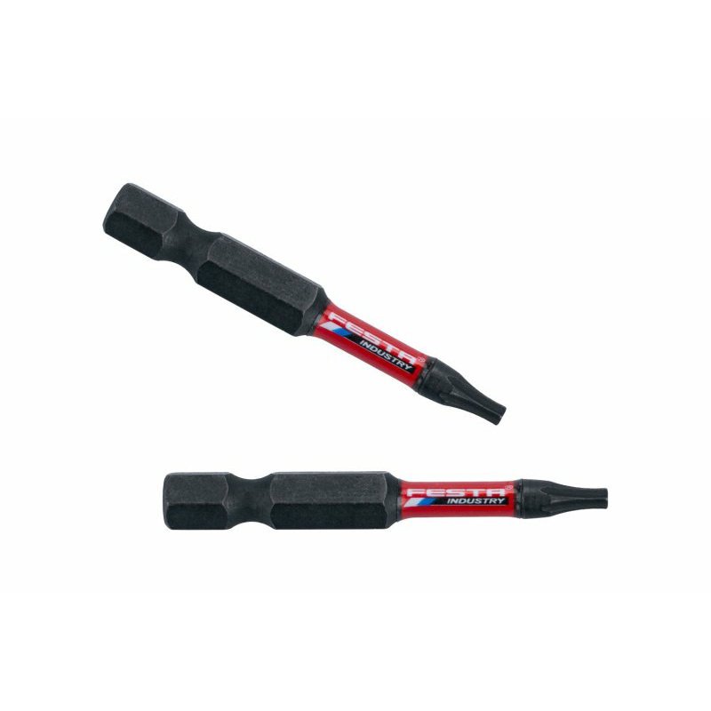 Torzný bit FESTA Industry je špeciálne navrhnutý pre rázové uťahovače s veľkým krútiacim momentom. Špeciálne tepelné spracovanie a geometria bitu znižujú vnútorné napätie, čo zvyšuje pružnosť bitu pri krútení. Vďaka tomu nedochádza k praskaniu bitu pri nárazoch uťahovača. Precízne opracovanie hrotu zabezpečuje presné zapadnutie a pevné držanie v hlave skrutky. Bity sú vďaka svojim vlastnostiam zvlášť vhodné pre konštrukčné skrutky pri práci s rázovými uťahovačmi.