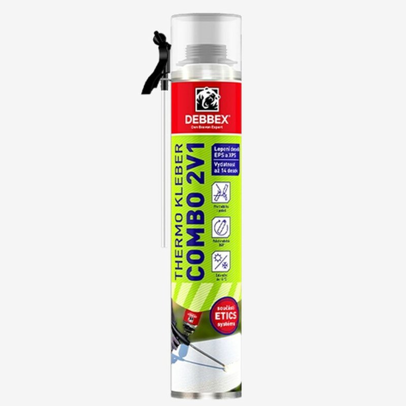 Lepiaca PU pena Den Braven THERMO KLEBER COMBO 2v1 je nízkoexpanzná polyuretánová pena ideálna na rýchle a spoľahlivé lepenie EPS a XPS dosiek, pričom ju môžete aplikovať pištoľou alebo prioamo pomocou priloženej trubičky. Vďaka možnosti polohovania 360° uľahčuje prácu aj na ťažko dostupných miestach, pričom ponúka výborné tepelnoizolačné a zvukovoizolačné vlastnosti. Je súčasťou ETICS systému, vhodná na celoročné použitie, a to až do teploty -5 °C. Vysoká výťažnosť, ktorá pokryje až 14 dosiek, zaručuje efektívnosť pri lepení a montáži izolačných systémov na zvislé konštrukcie. THERMO KLEBER COMBO 2v1 je skvelou voľbou pre profesionálov aj domácich majstrov, ktorí hľadajú rýchle a spoľahlivé riešenie na aplikáciu izolačných materiálov.