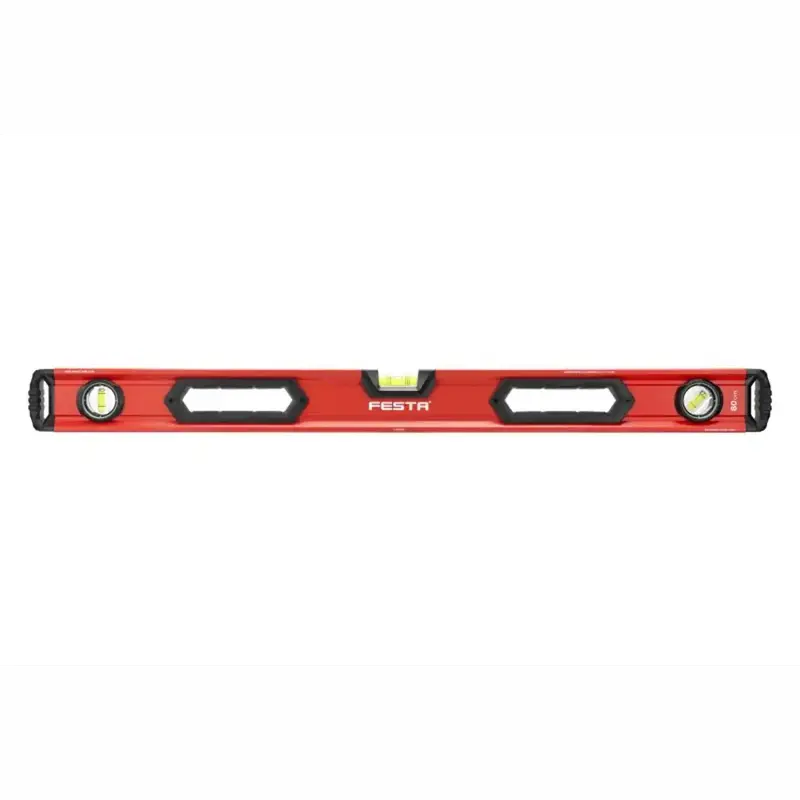 Profesionálna vodováha FESTA s dĺžkou 800 mm a tromi presnými libelami ponúka spoľahlivé meranie v každej situácii. Robustná hliníková konštrukcia s presnosťou 0,5 mm/m a vysokou odolnosťou voči nárazom je ideálnou voľbou pre každého remeselníka aj náročného domáceho majstra.