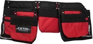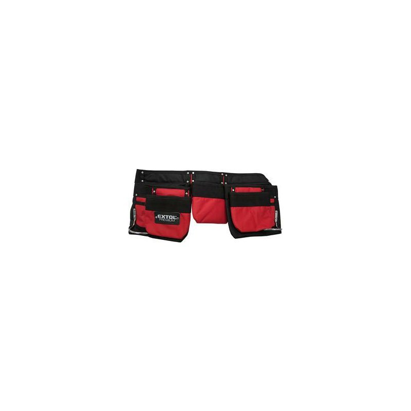 Vrecko na náradie trojdielne s opaskom, nylónové 7 vreciek (2 veľké, 3 stredné, 2 malé), držiak na kladivo, úchyty pre ceruzu alebo skrutkovač Materiál: nylon spojený extra silnými nitmi, opasok s plastovou rýchloupínacou prackou
