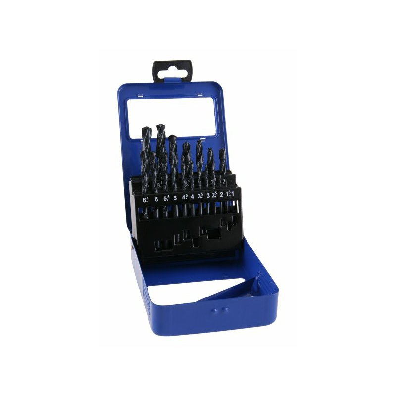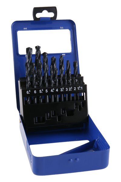 Sada vrtákov do kovu 1,0-10,0mm 19ks. Sada vrtákov do kovu HSS, spĺňajúce normu DIN 338, vrtáky sú vyrobené z vysoko kvalitnej rýchloreznej ocele (HSS), Wolfram 4%, Molybdén 3%, Chróm 4%, Vanádium 1%.