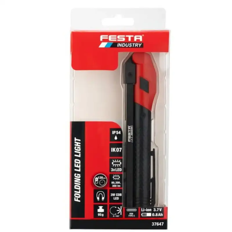Nabíjateľné LED svietidlo FESTA Industry je praktickým pomocníkom do dielne, garáže, auta aj na bežné použitie v teréne. Kompaktné prevedenie, výklopné rameno, COB LED technológia a silný magnet z neho robia univerzálne pracovné svietidlo, ktoré vám pomôže nasvietiť priestor presne tam, kde to potrebujete.