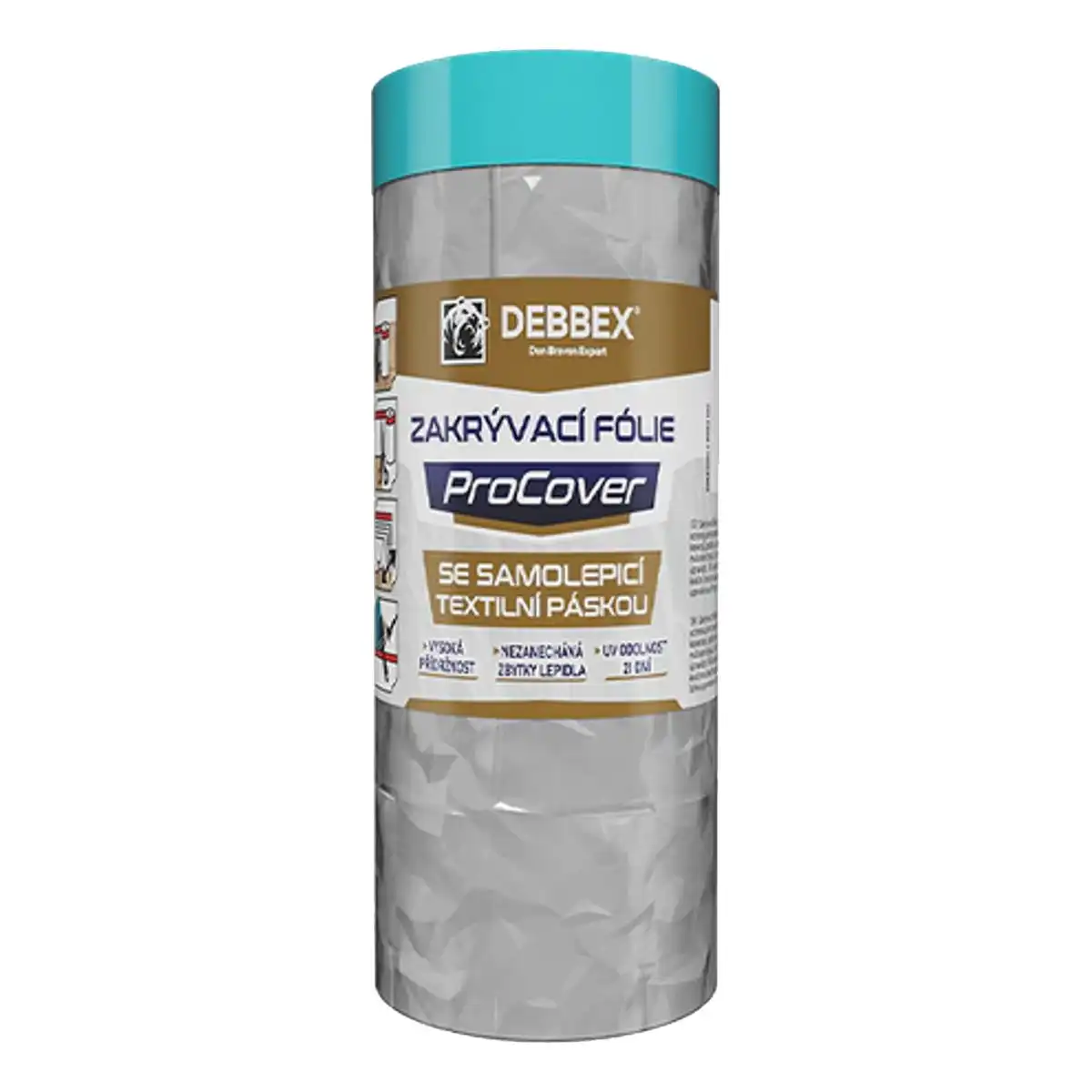Kvalitná textilná páska umožňuje jednoduché prichytenie fólie k povrchu, aby zakrytie držalo presne tam, kde ho potrebujete.