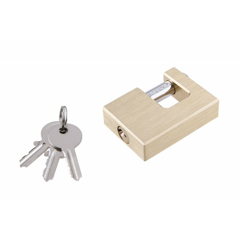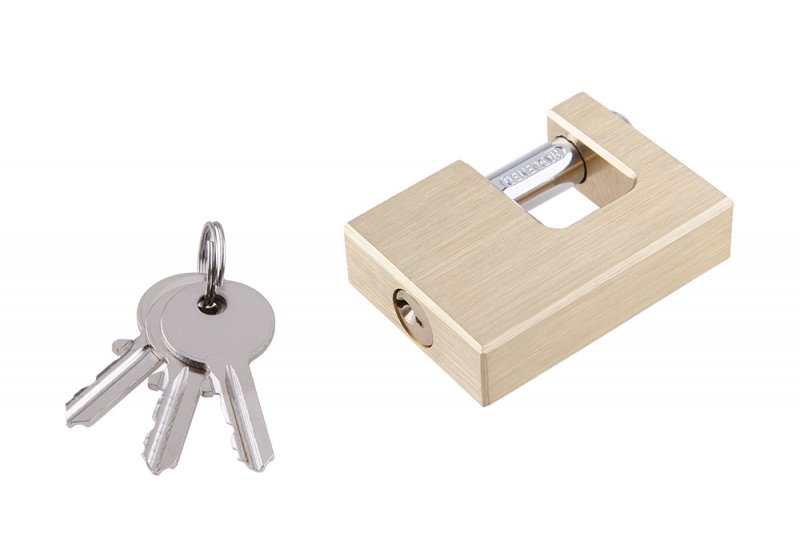 Krytý čapovaný visiaci zámok 60mm, pomosadzený, 2 kľúče