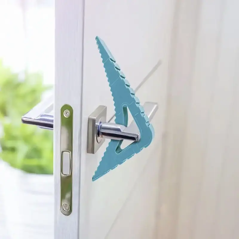Praktická viacúčelová dverná a okenná zarážka DOOR STOPPER spoľahlivo zafixuje dvere a okná aj pri silnom prievane. Jednoduché nasadenie na kľučku alebo rám zároveň chráni steny pred odreninami a kovanie pred poškodením – ideálna do domácnosti aj kancelárie.
