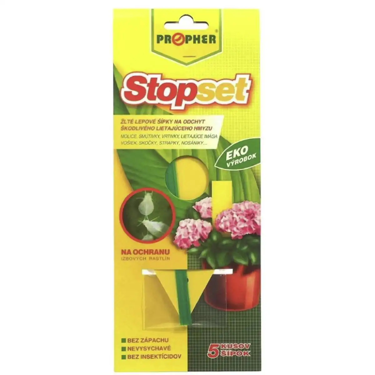 Žlté lepové šípky STOPSET sú praktickým riešením na monitoring a odchyt škodlivého lietajúceho hmyzu v interiéri aj exteriéri. Využijete ich v záhradách, sadoch, skleníkoch, bytoch aj v skladoch ovocia a zeleniny, kde pomáhajú zachytiť molice, smútivky, vrtivky, lietajúce imága vošiek, skočky, minérky, strapky aj nosániky.