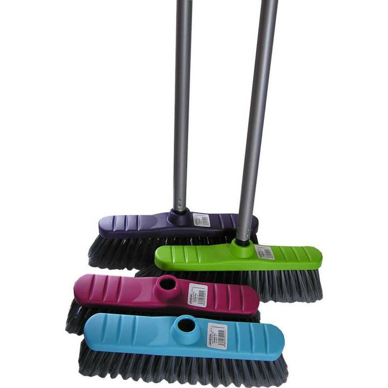 Plastový zmeták EKO so striebornou tyčou 120cm, mix pastelových farieb
